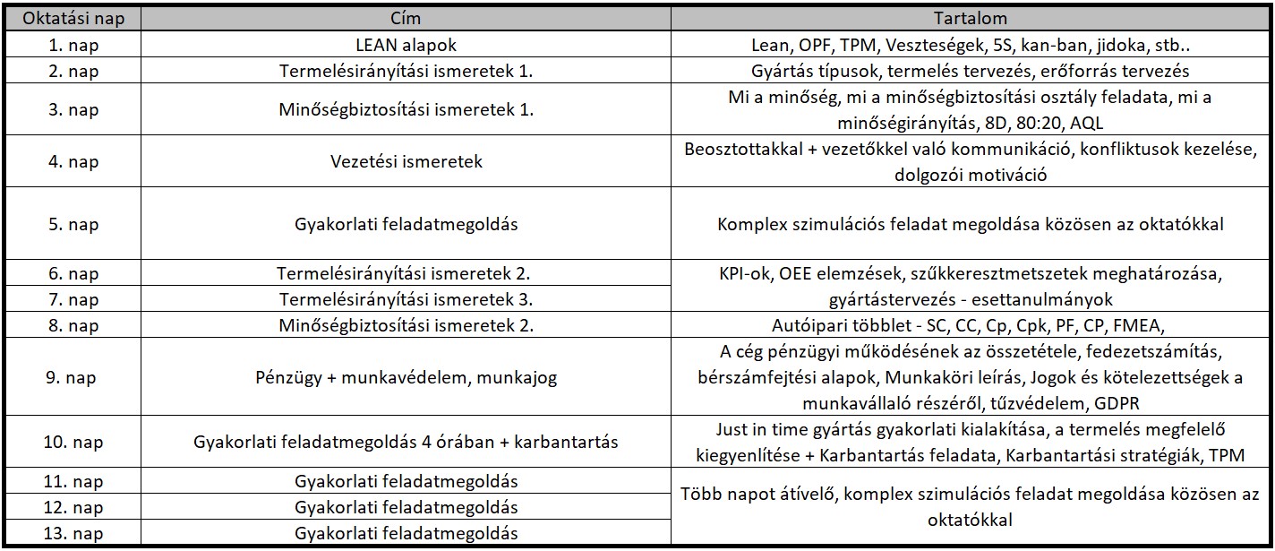 • Engedélyezett képzési programok